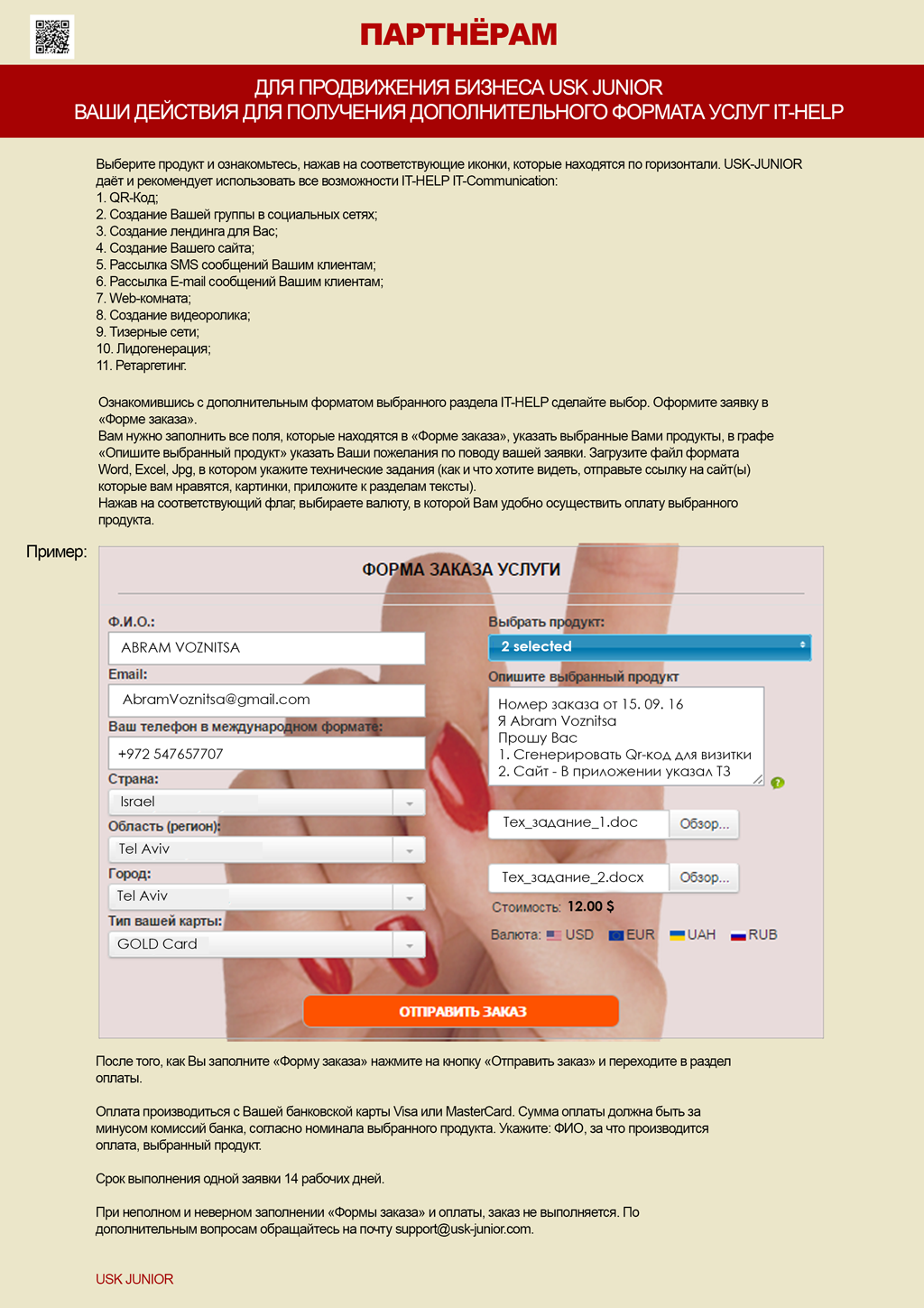 Настоящее Соглашение является официальным предложением (публичной офертой), USK GROUP Ltd и USK JUNIOR. (далее «Компания») в адрес любого физического лица, обладающего дееспособностью и необходимыми полномочиями заключить договор с Компанией на условиях и в порядке, установленными данным Соглашением, действующим законодательством и содержит все существенные условия договора. Настоящее Соглашение устанавливается Компанией самостоятельно, и может быть принято не иначе, как путем присоединения к нему в целом, без каких- либо исключений и оговорок.